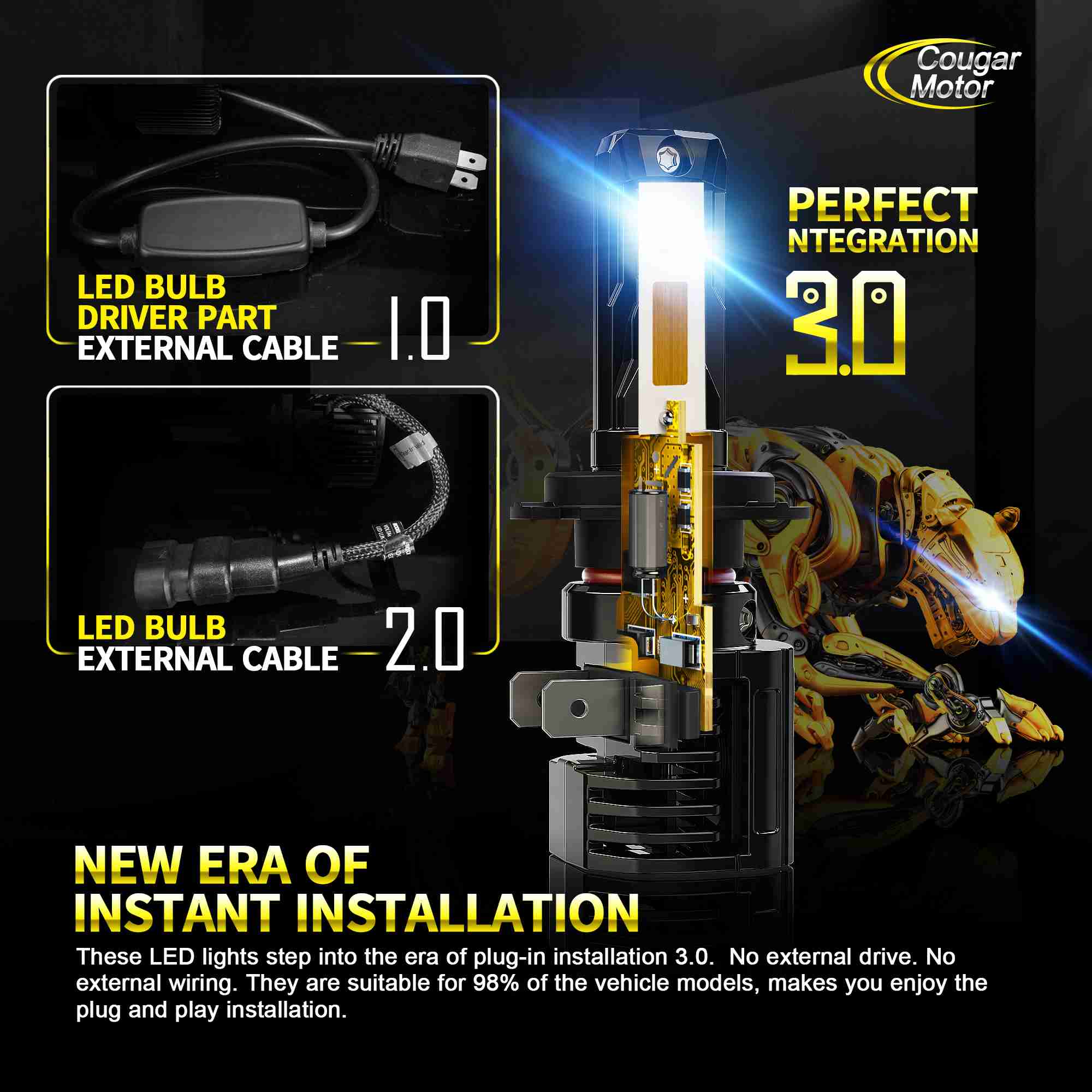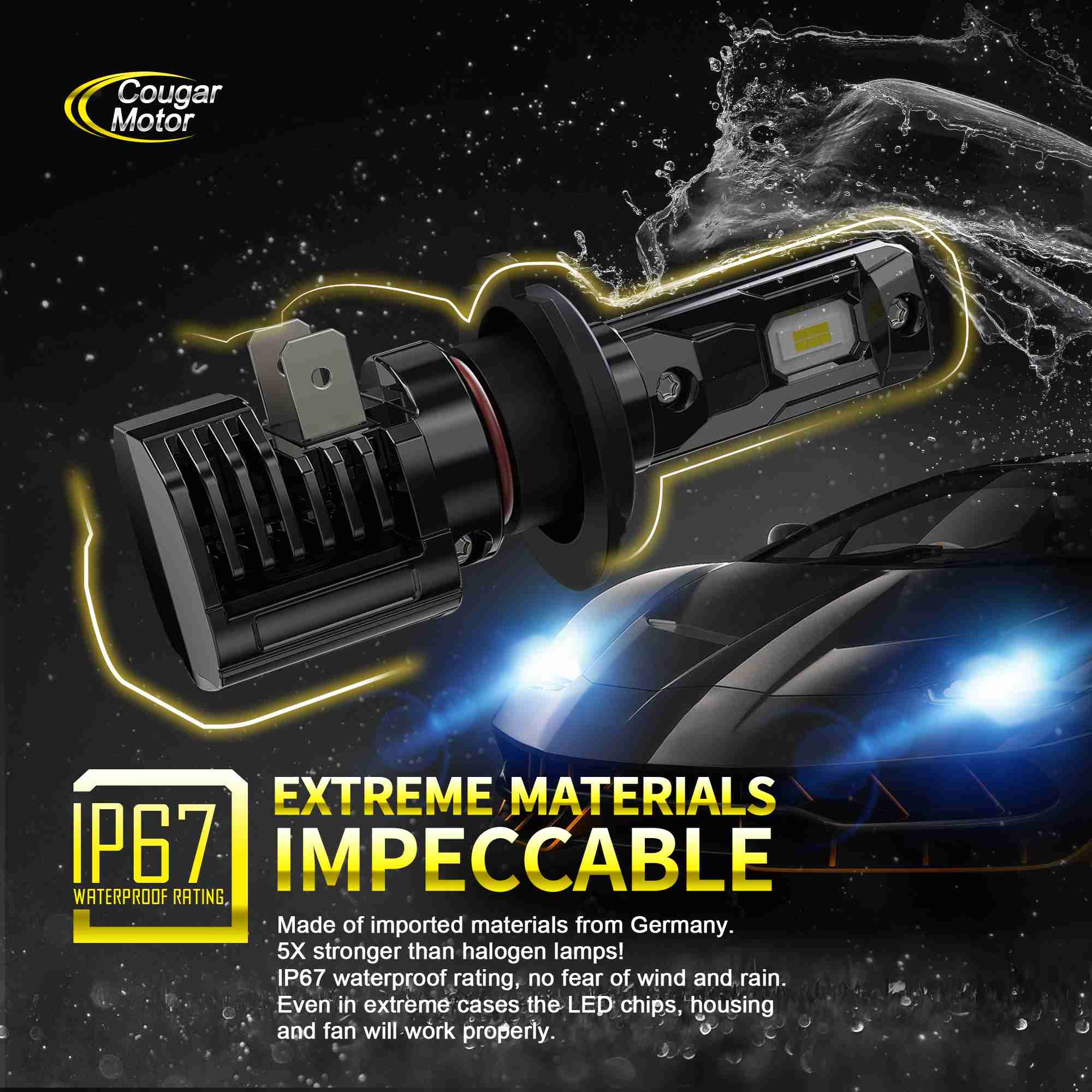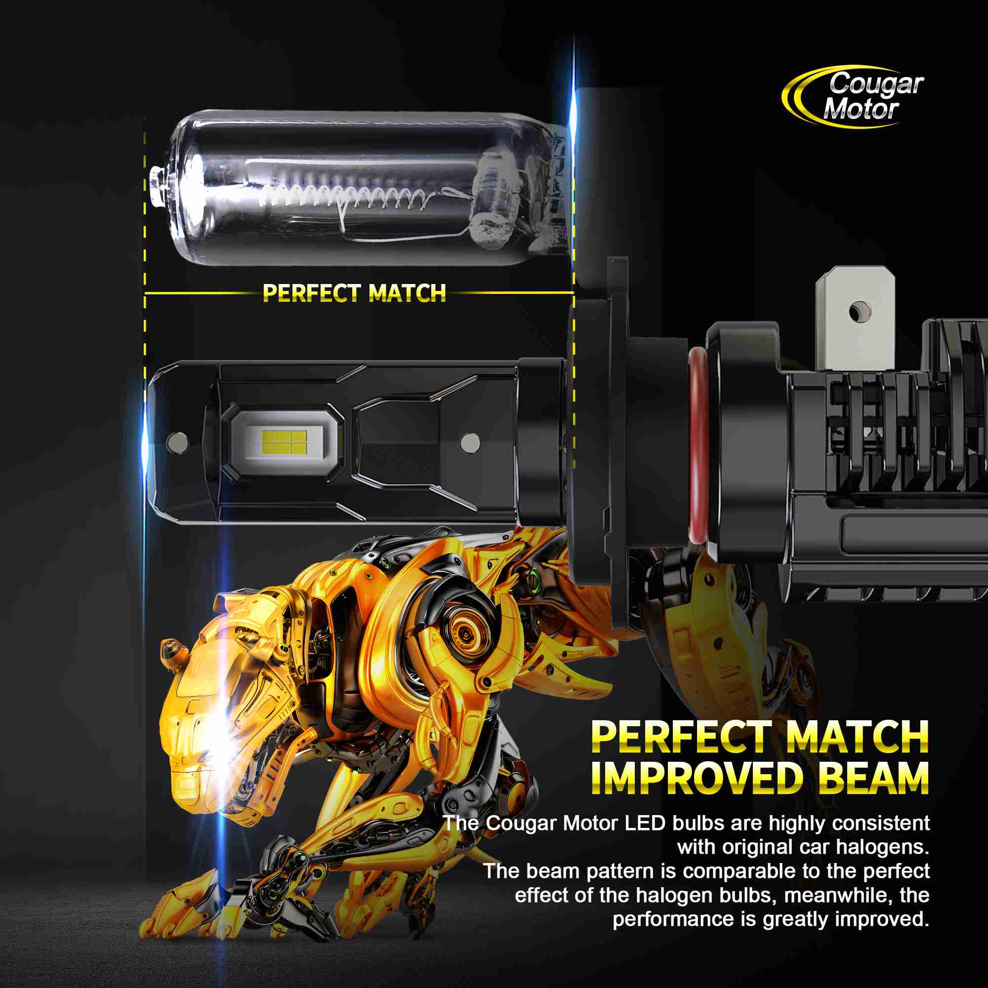- PERFECT MATCH: Cougar Motor H7 LED bulb in 1:1 size vs original halogen bulb, identical luminous position, still the perfect beam pattern, but performance exceeds! The most ideal LEDs to upgrade your bulb.